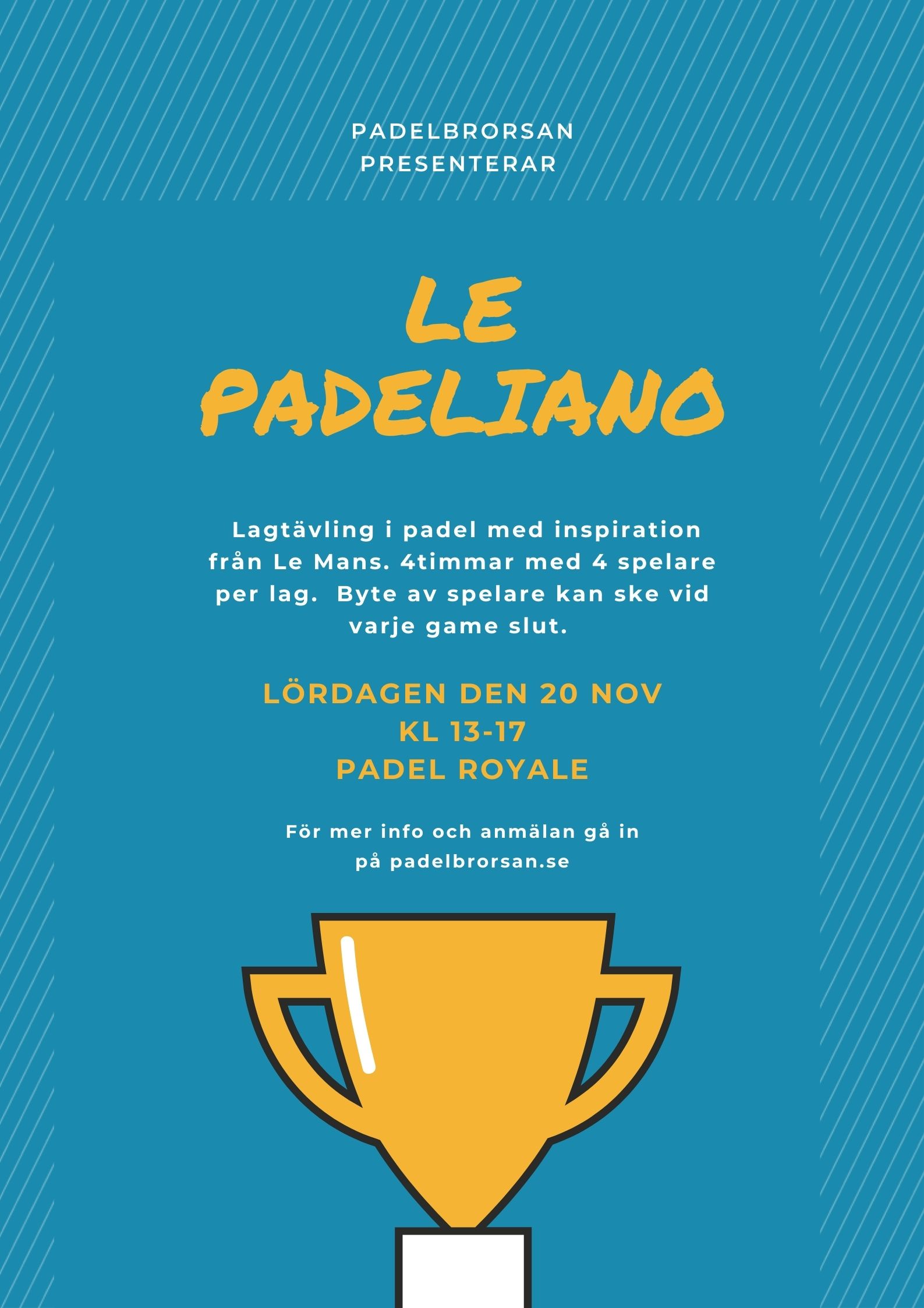 Lördagen 20 NovemberPadel Royale, Johannesfredsvägen 14, Bromma |